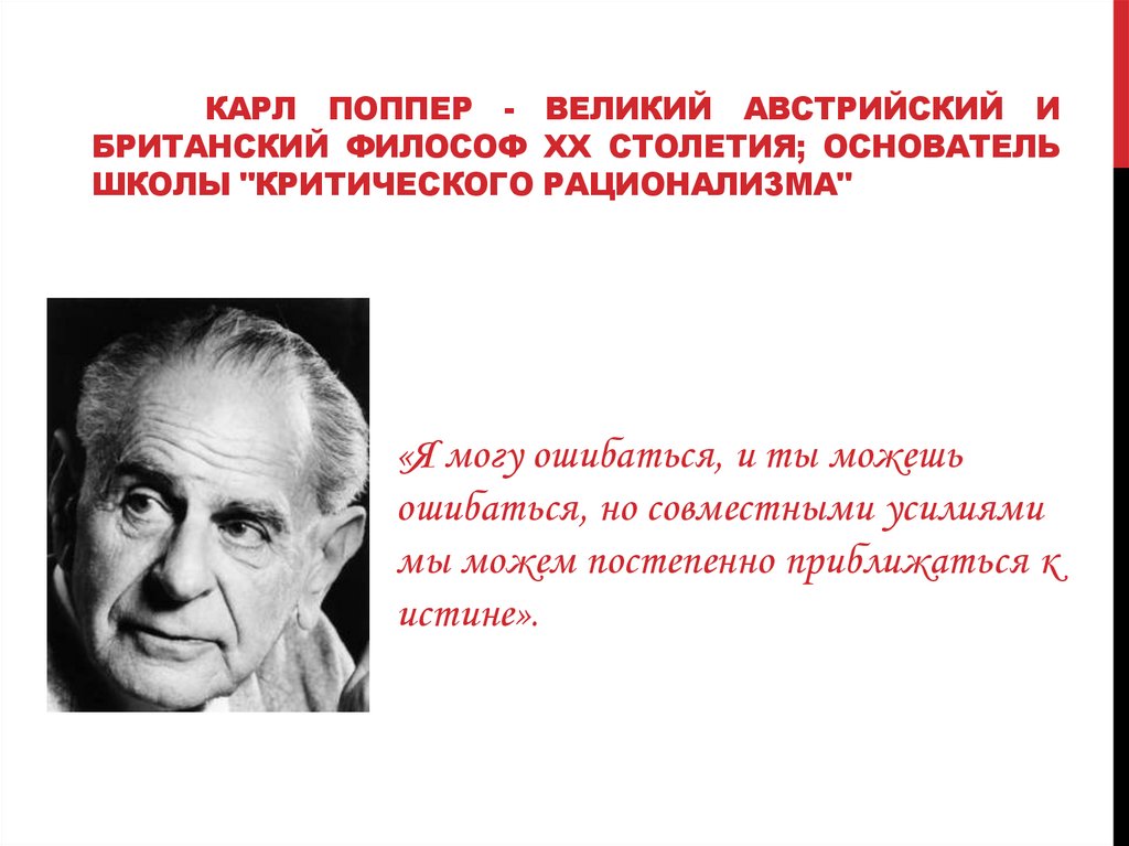 КАРЛ ПОППЕР - ВЕЛИКИЙ АВСТРИЙСКИЙ ИБРИТАНСКИЙ ФИЛОСОФ XX СТОЛЕТИЯ; ОСНОВАТЕЛЬ