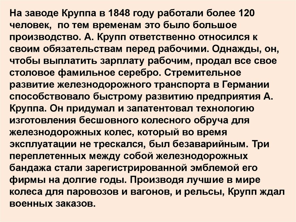На заводе Круппа в 1848 году работали более 120человек, по тем временам это было большое