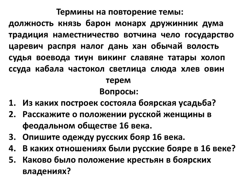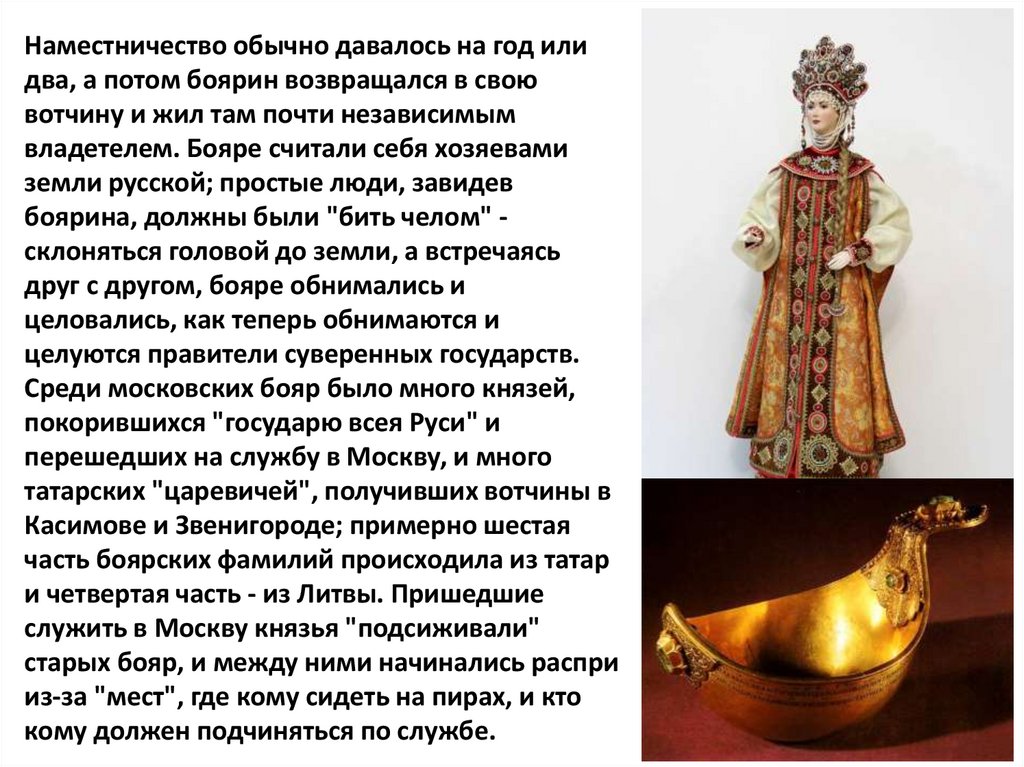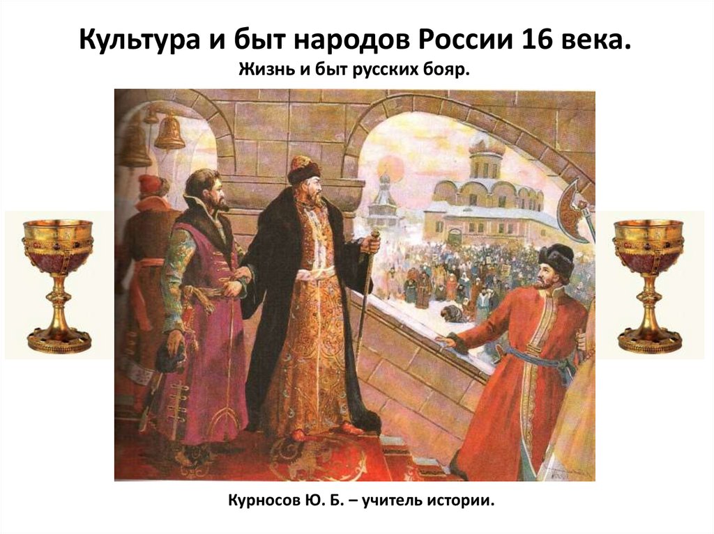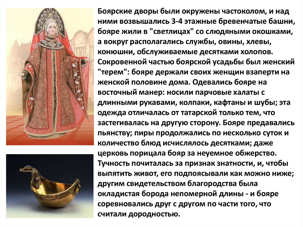Культура и быт народов России 16 века.Жизнь и быт русских бояр.
