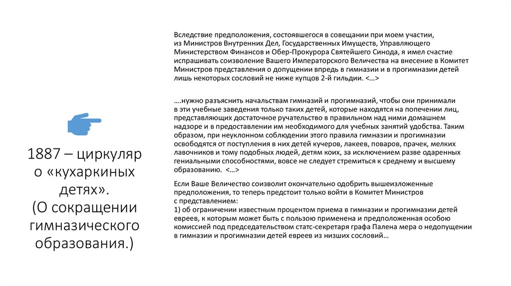 Министров представления о допущении впредь в гимназии и в прогимназии детей