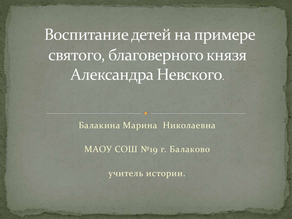 Воспитание детей на примере святого, благоверного князя Александра Невского