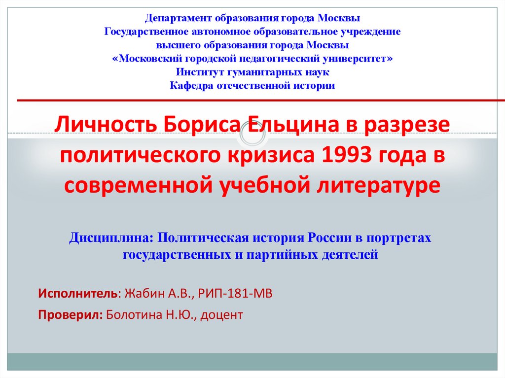 Личность Бориса Ельцина в разрезе политического кризиса 1993 года в современной учебной литературе