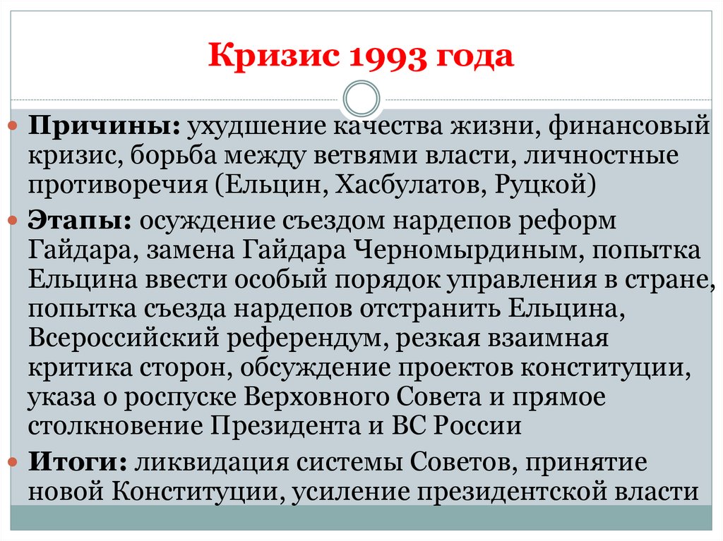 Кризис 1993 годаПричины: ухудшение качества жизни, финансовый