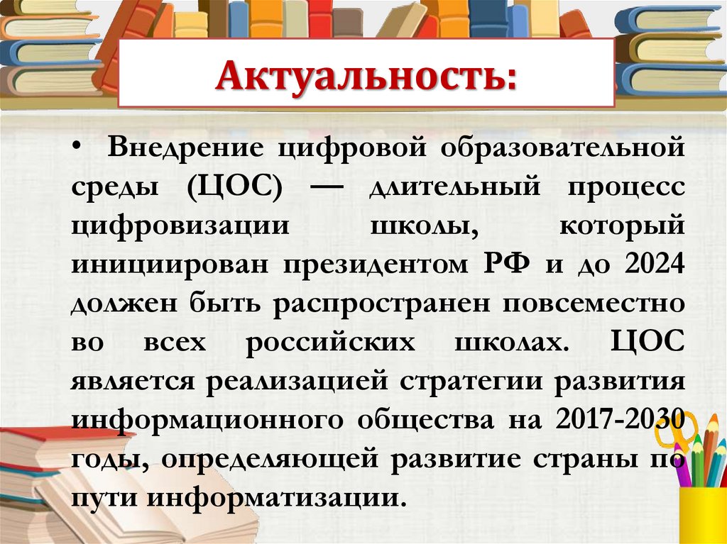 Актуальность:• Внедрение цифровой образовательной