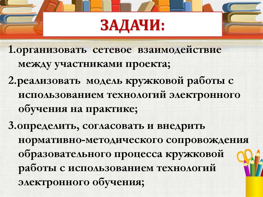 2.реализовать модель кружковой работы с