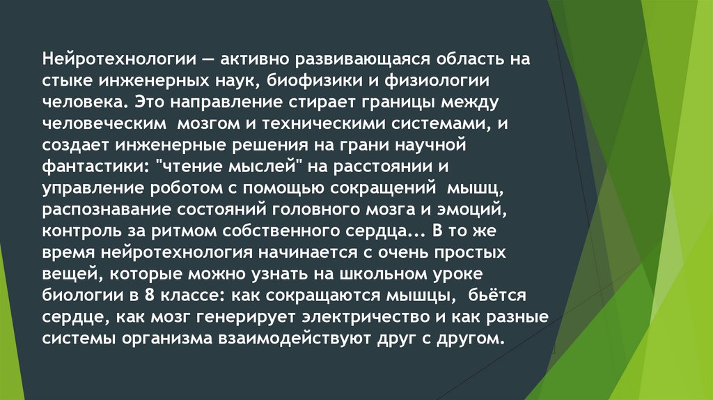 Нейротехнологии — активно развивающаяся область настыке инженерных наук, биофизики и физиологии