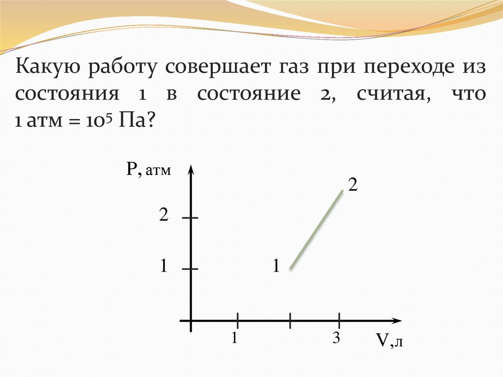 Какую работу совершает газ при переходе изсостояния 1 в состояние 2, считая, что