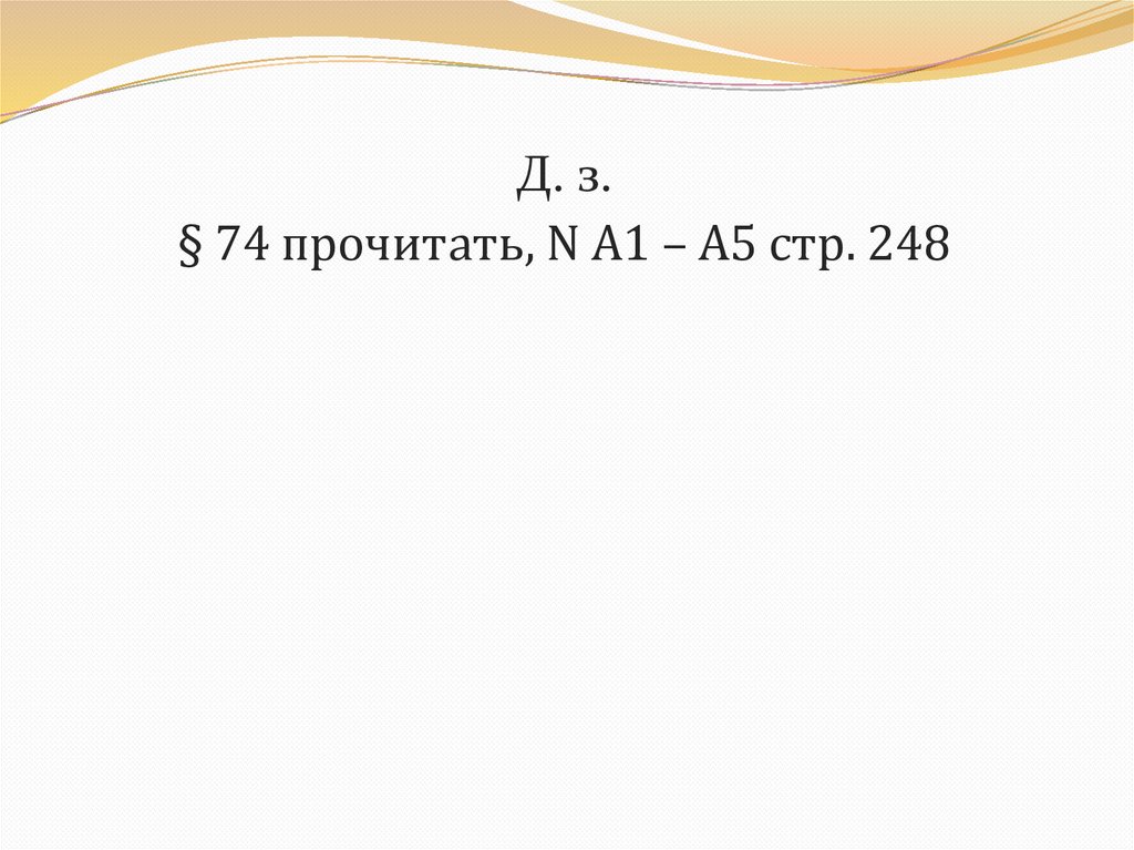 Д. з.§ 74 прочитать, N А1 – А5 стр. 248