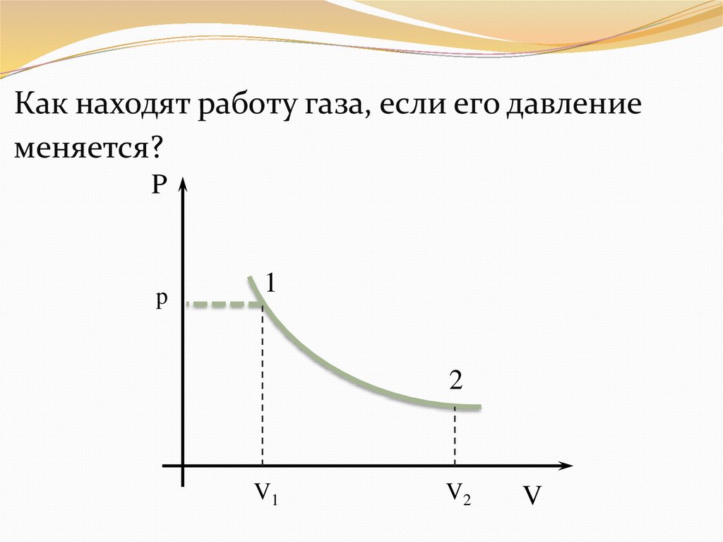 Работа газа при изобарном процессе равнапроизведению давления газа на изменение его