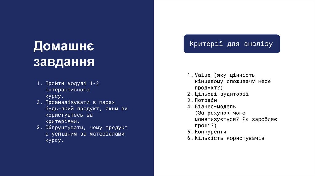 Value (яку цінність кінцевомуспоживачу несе продукт?)
