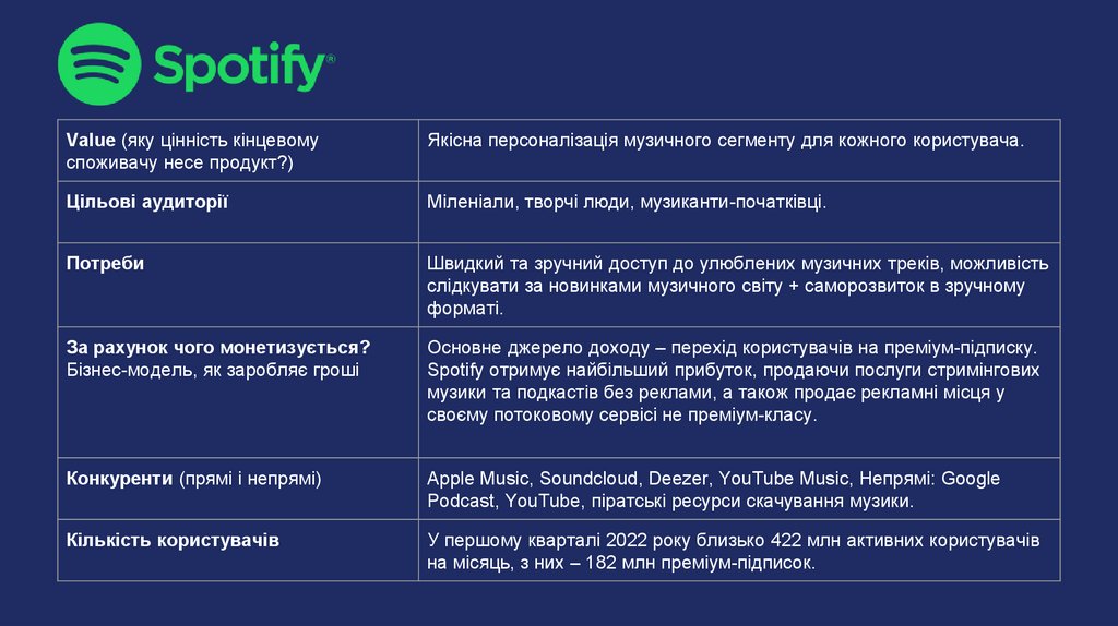 музики та подкастів без реклами, а також продає рекламні місця у