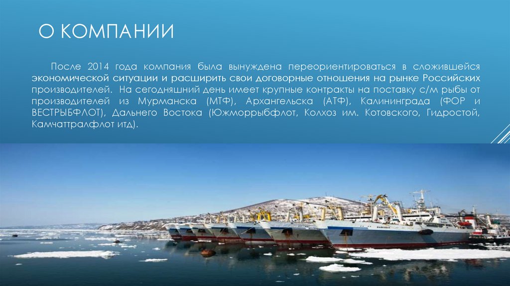 О КОМПАНИИПосле 2014 года компания была вынуждена переориентироваться в сложившейся