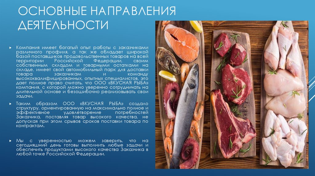 свежемороженой рыбной и мясной продукции импортного и российского производства.
