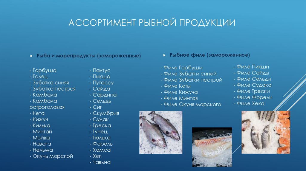 АССОРТИМЕНТ РЫБНОЙ ПРОДУКЦИИРыба и морепродукты (замороженные)