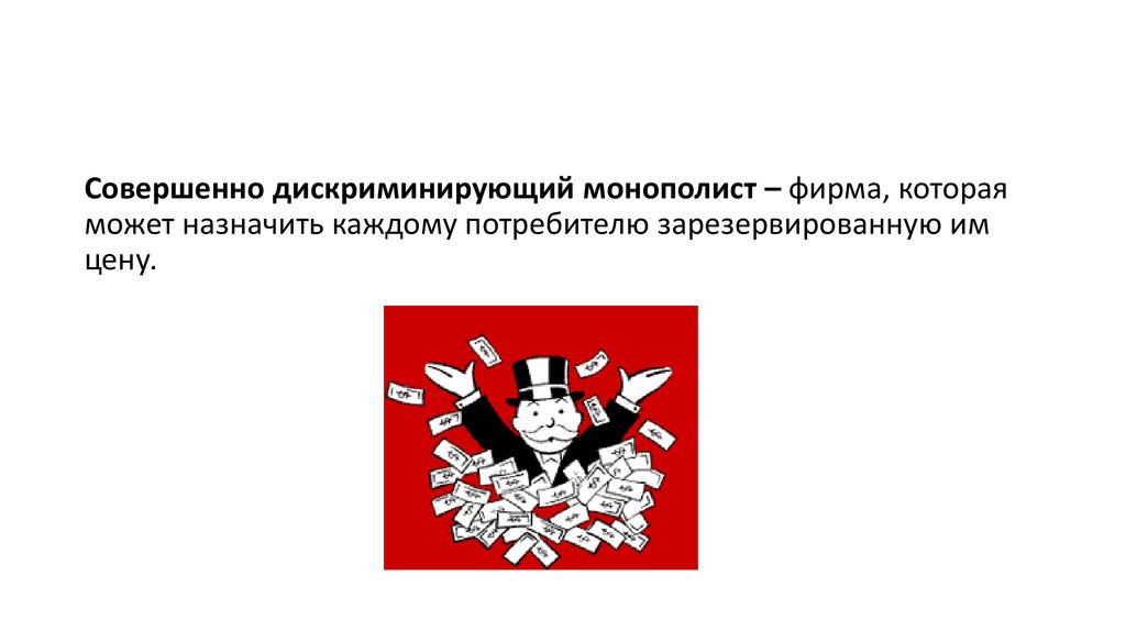 Совершенно дискриминирующий монополист – фирма, котораяможет назначить каждому потребителю зарезервированную им