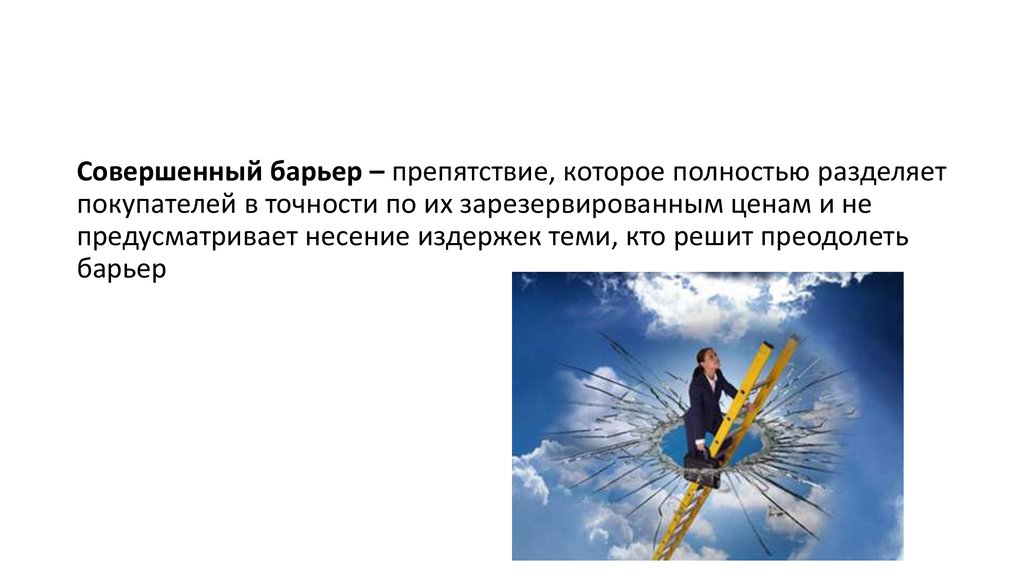 Совершенный барьер – препятствие, которое полностью разделяетпокупателей в точности по их зарезервированным ценам и не