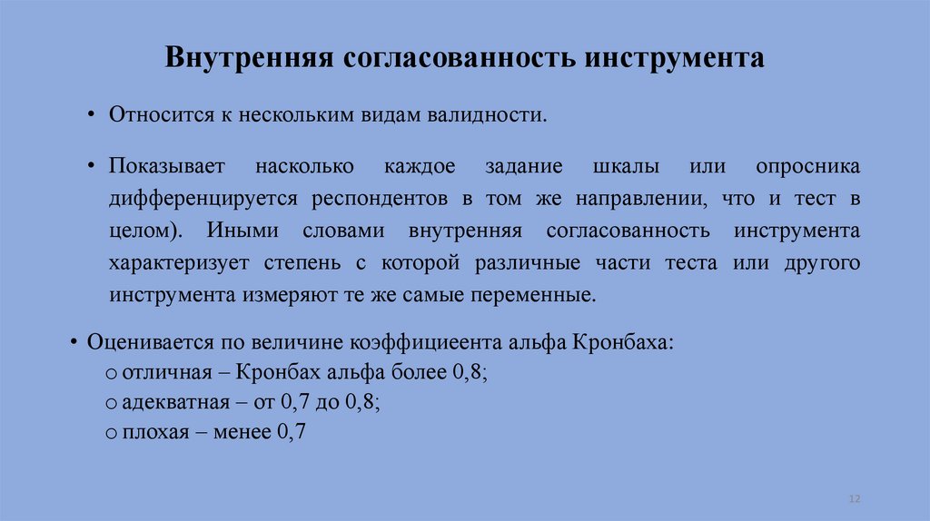 o При исследовании небольших групп рекомендуется использовать инструменты, имеющие ВКК > 0.9.