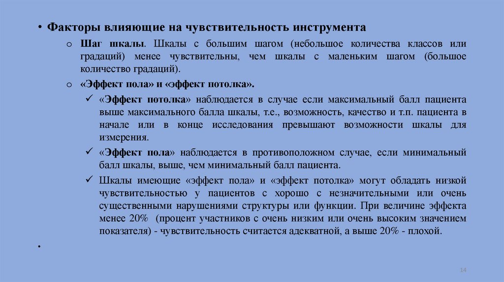 Шкалы имеющие «эффект пола» и «эффект потолка» могут обладать низкой