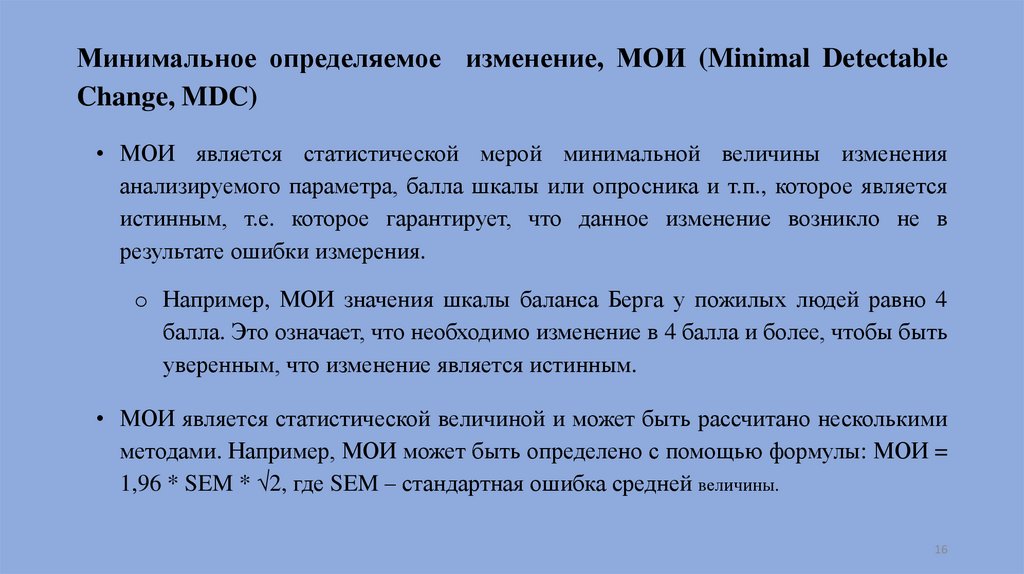 Минимальное определяемое изменение, МОИ (Minimal DetectableChange, MDC)