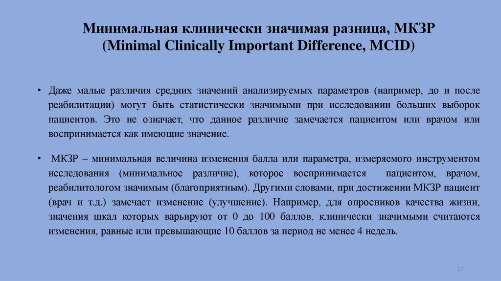 Минимальная клинически значимая разница, МКЗР(Minimal Clinically Important Difference, MCID)