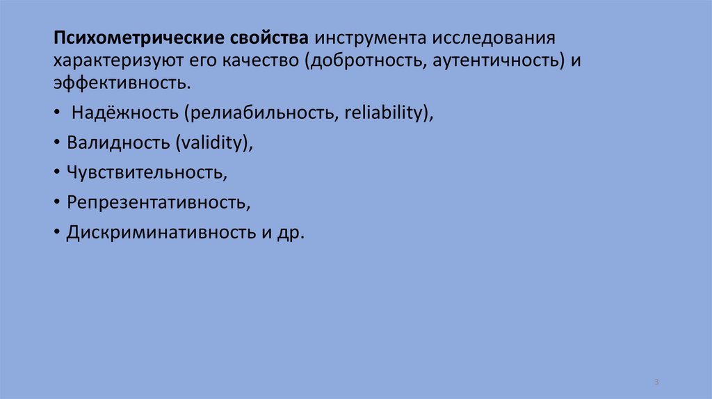 Психометрические свойства инструмента исследованияхарактеризуют его качество (добротность, аутентичность) и
