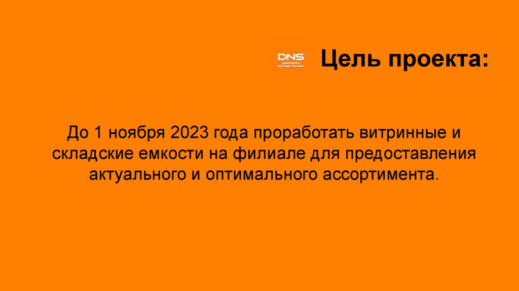 Цель проекта:До 1 ноября 2023 года проработать витринные и