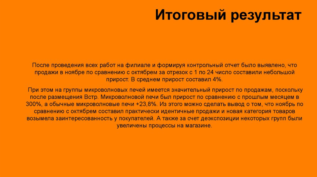 300%, а обычные микроволновые печи +23,8%. Из этого можно сделать вывод о том, что ноябрь по