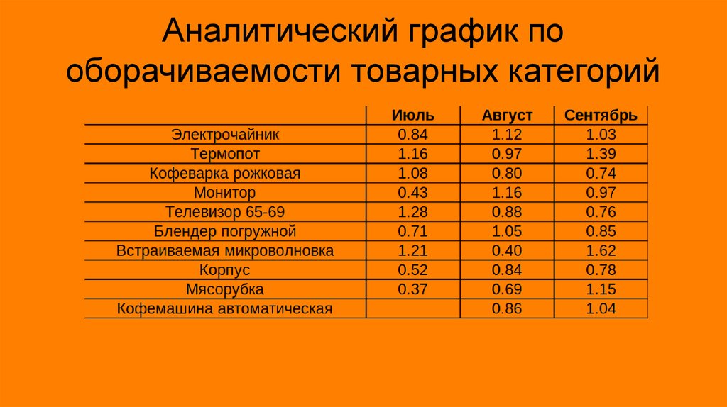Аналитический график пооборачиваемости товарных категорий