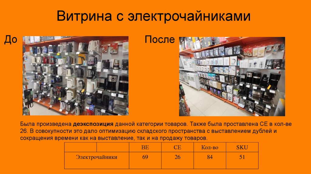 Витрина с электрочайникамиДо