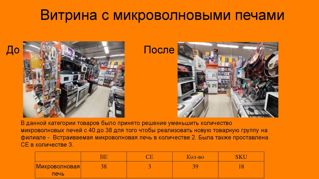 микроволновых печей с 40 до 38 для того чтобы реализовать новую товарную группу на