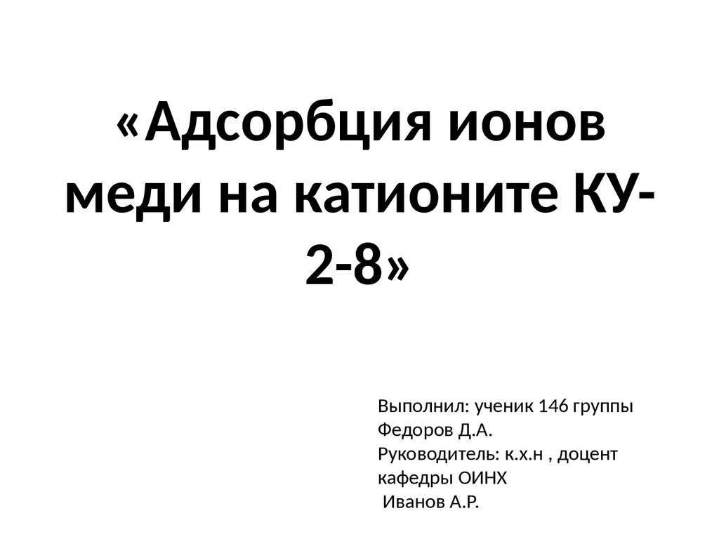 Адсорбция ионов меди на катионите КУ2-8