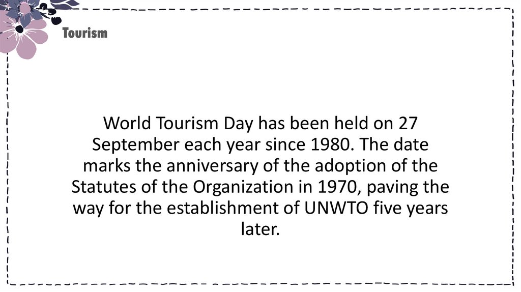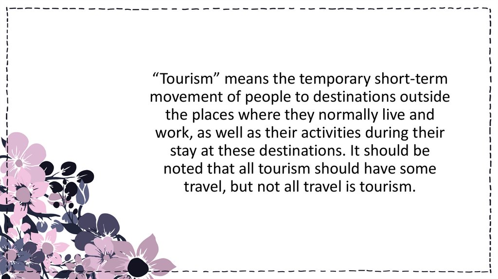 “Tourism” means the temporary short-termmovement of people to destinations outside