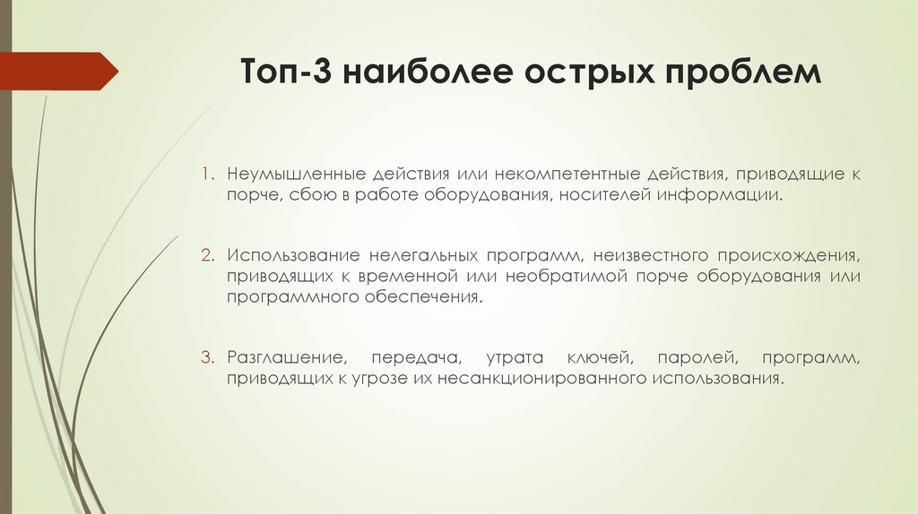 Топ-3 наиболее острых проблем1. Неумышленные действия или некомпетентные действия, приводящие к