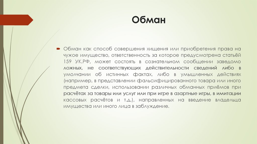 159 УК.РФ, может состоять в сознательном сообщении заведомо