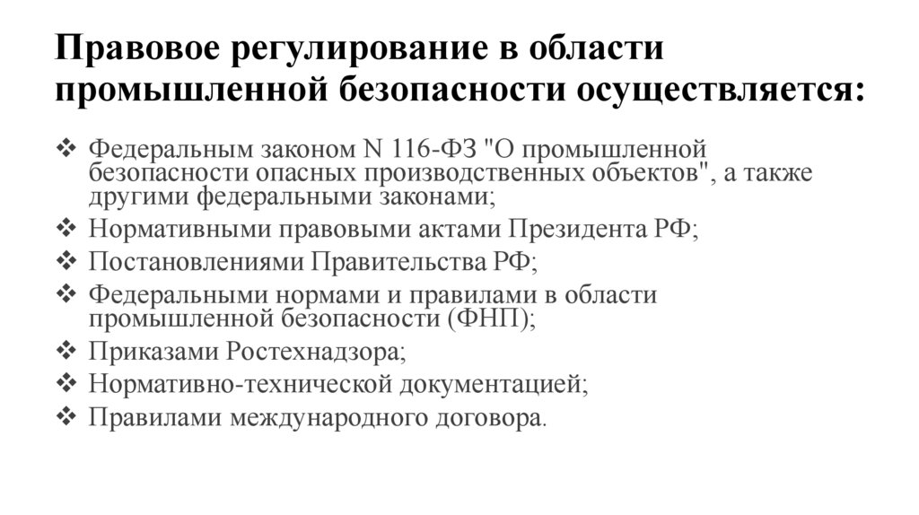 Правовое регулирование в областипромышленной безопасности осуществляется:
