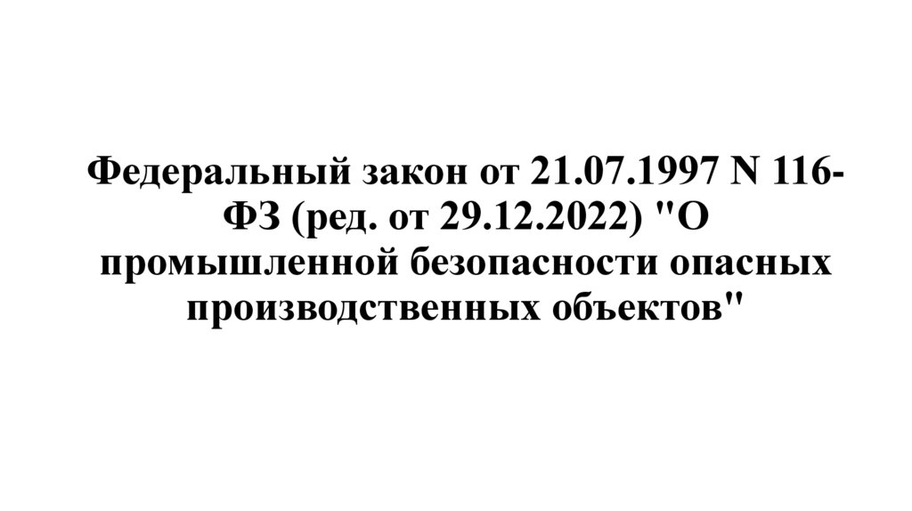Федеральный закон от 21.07.1997 N 116ФЗ (ред. от 29.12.2022) "Опромышленной безопасности опасных