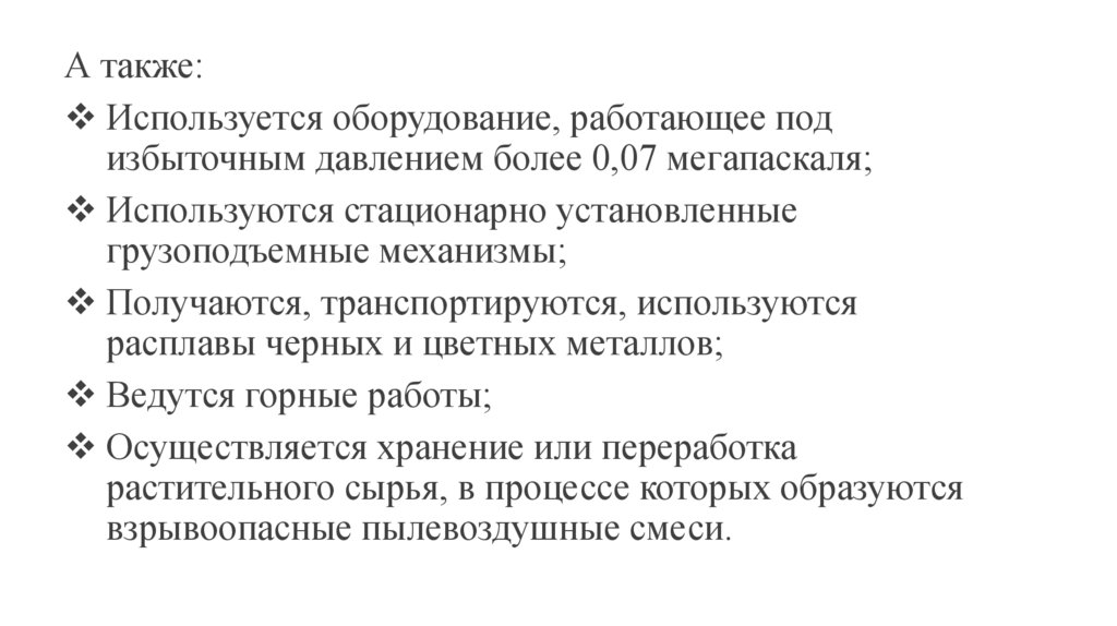 Опасные производственные объектыК ОПО относятся объекты, на которых