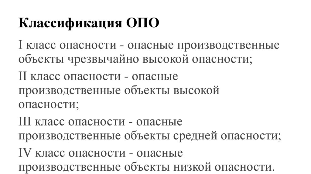 Классификация ОПОI класс опасности - опасные производственные