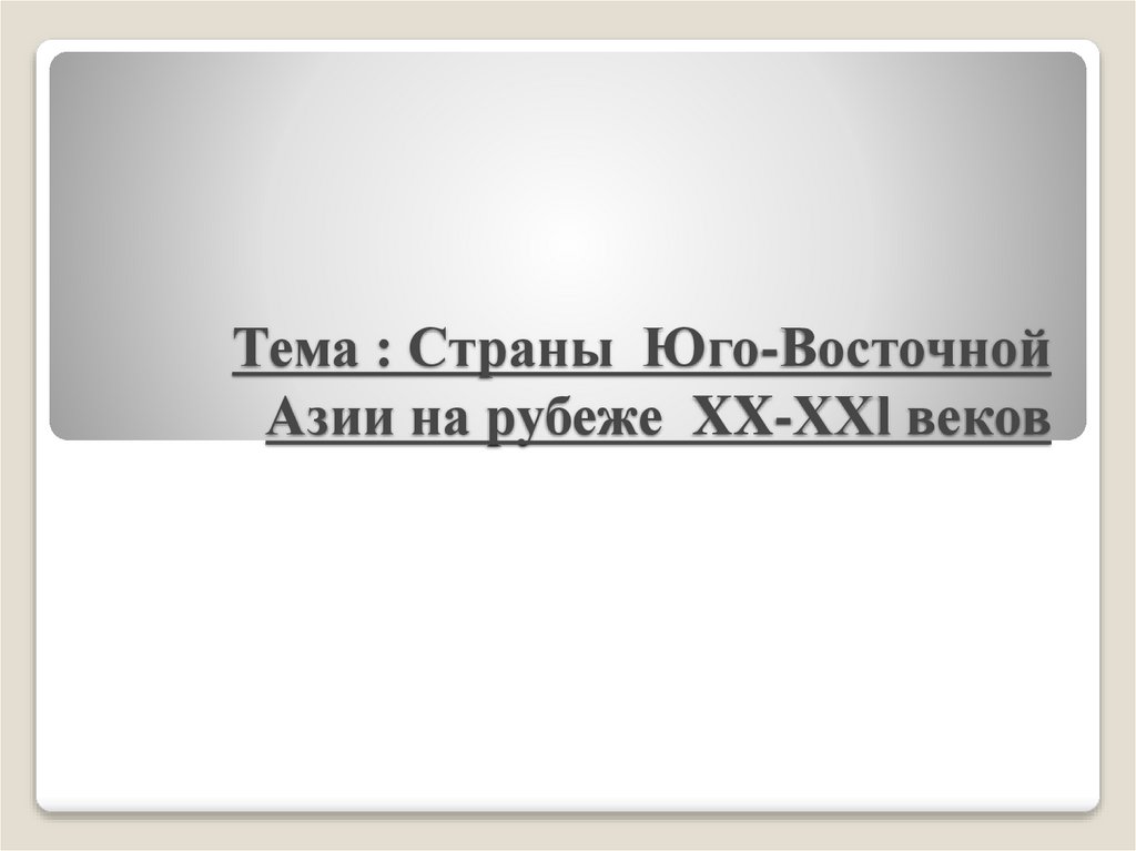 Тема : Страны Юго-ВосточнойАзии на рубеже XX-XXӏ веков