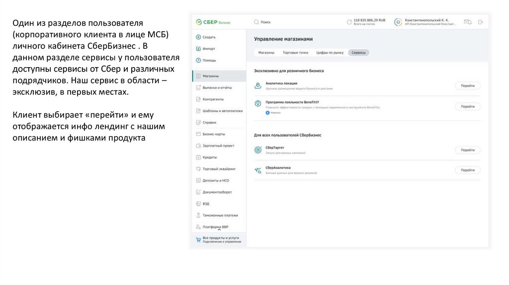Один из разделов пользователя(корпоративного клиента в лице МСБ)