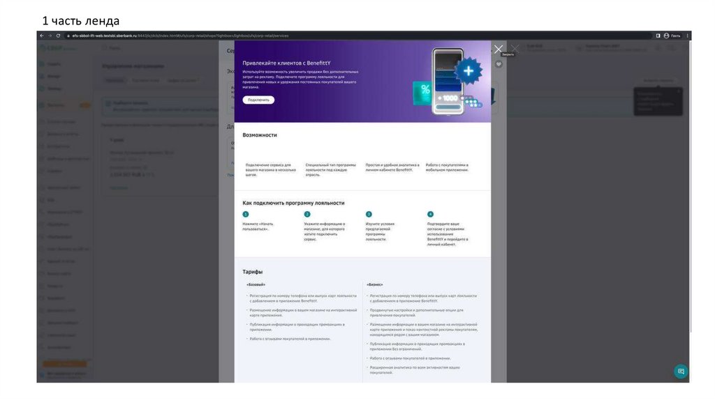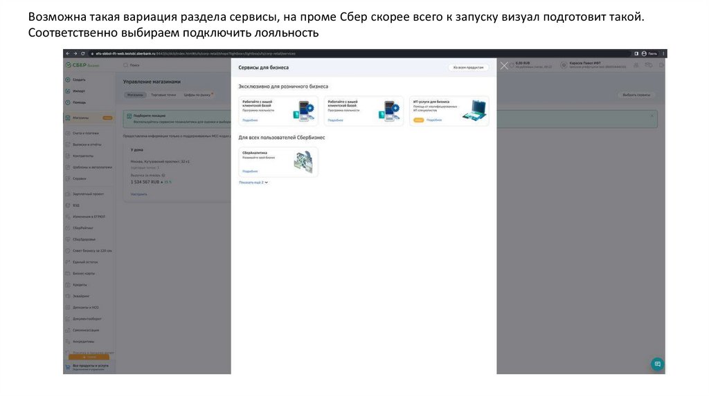 Возможна такая вариация раздела сервисы, на проме Сбер скорее всего к запуску визуал подготовит такой.Соответственно выбираем подключить лояльность