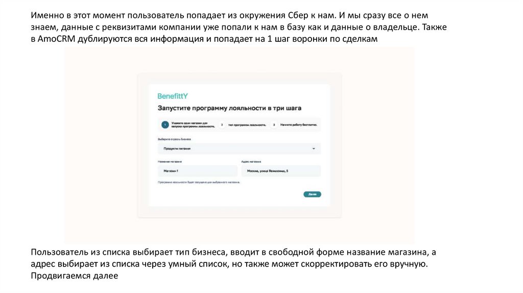 Именно в этот момент пользователь попадает из окружения Сбер к нам. И мы сразу все о немзнаем, данные с реквизитами компании уже попали к нам в базу как и данные о владельце. Также