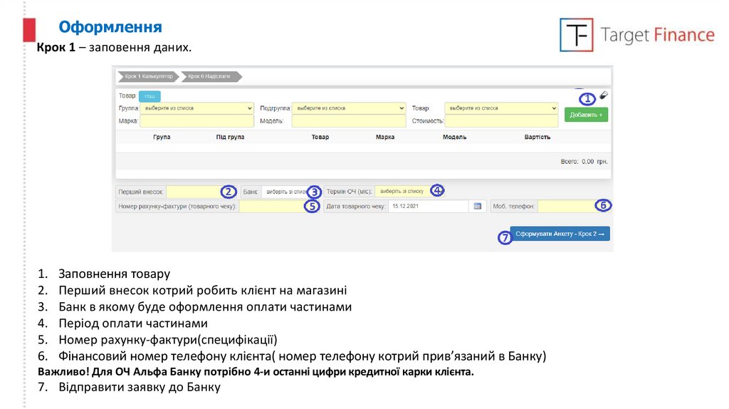 Важливо! Для ОЧ Альфа Банку потрібно 4-и останні цифри кредитної карки клієнта.