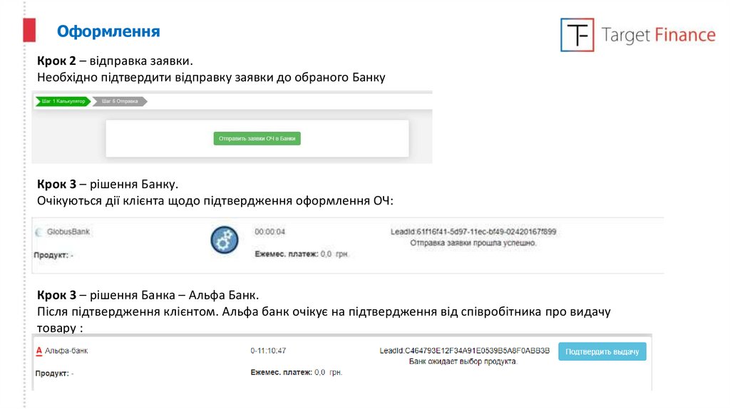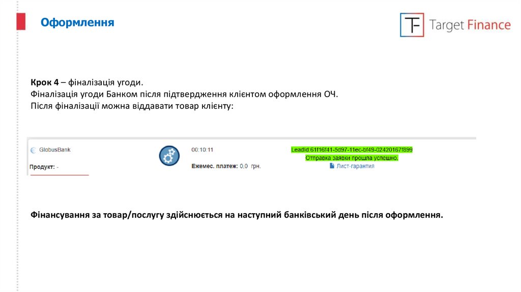 Фіналізація угоди Банком після підтвердження клієнтом оформлення ОЧ.