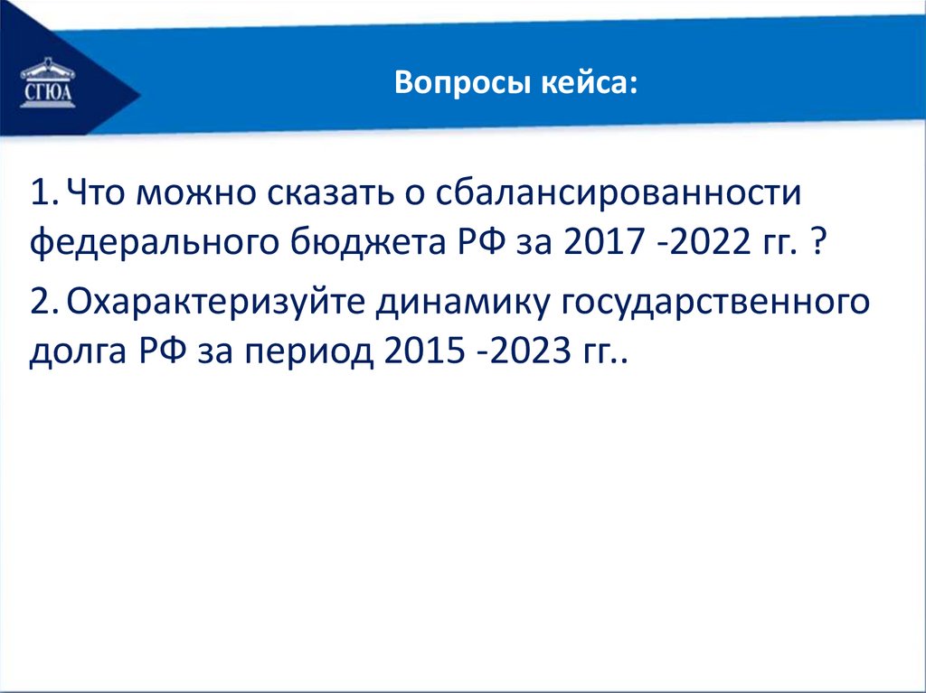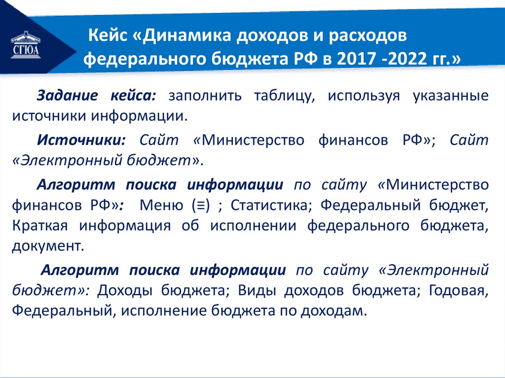 Кейс «Динамика доходов и расходовфедерального бюджета РФ в 2017 -2022 гг.»