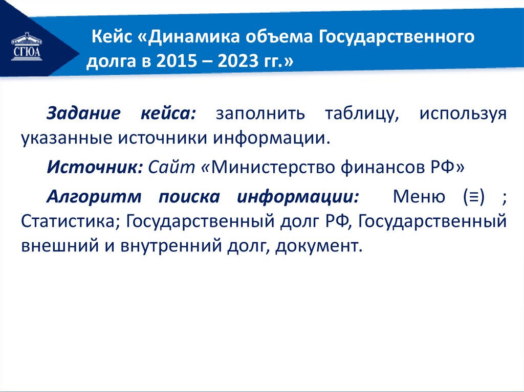Кейс «Динамика объема Государственногодолга в 2015 – 2023 гг.»