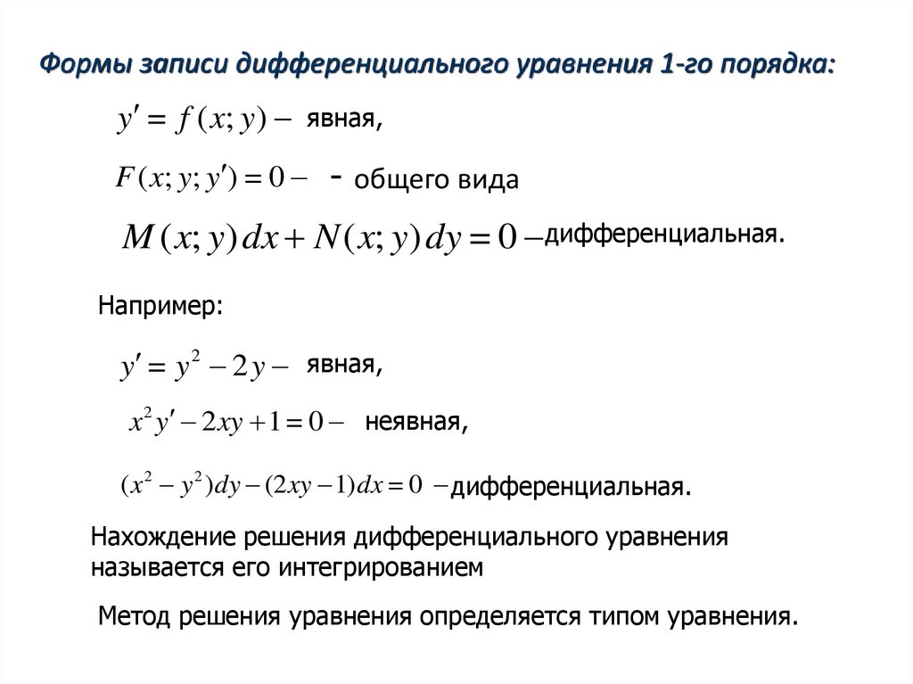 Формы записи дифференциального уравнения 1-го порядка:y = f ( x; y ) явная,