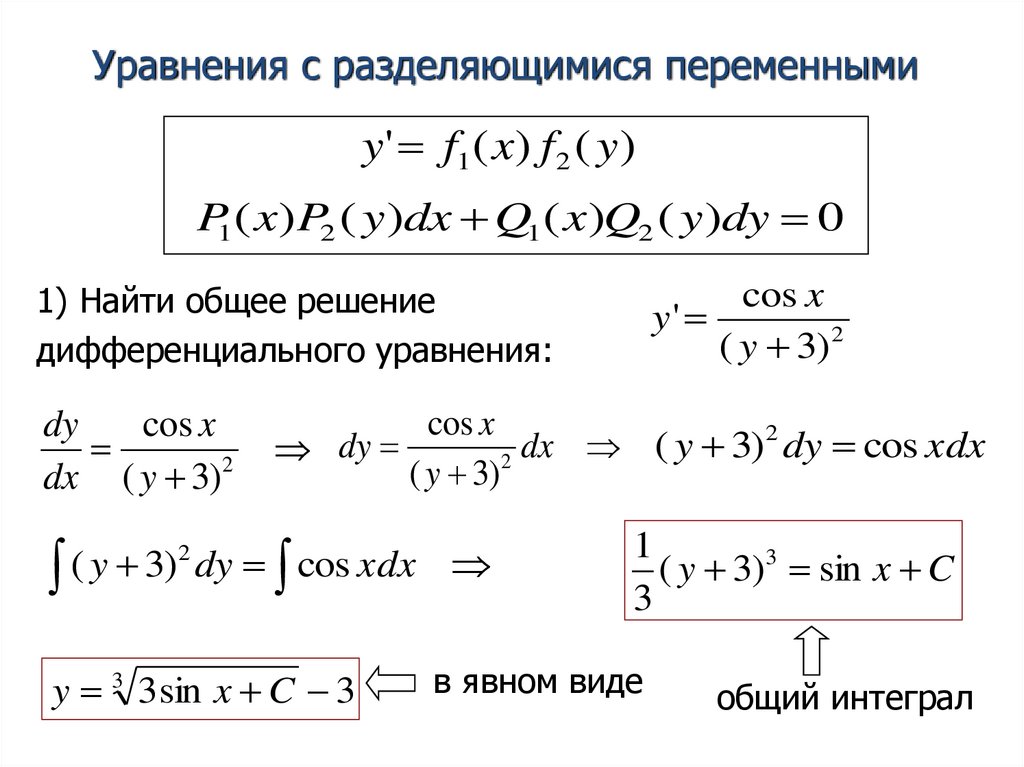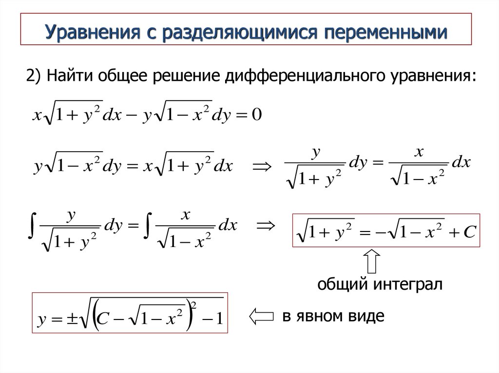 Уравнения с разделяющимися переменными2) Найти общее решение дифференциального уравнения: