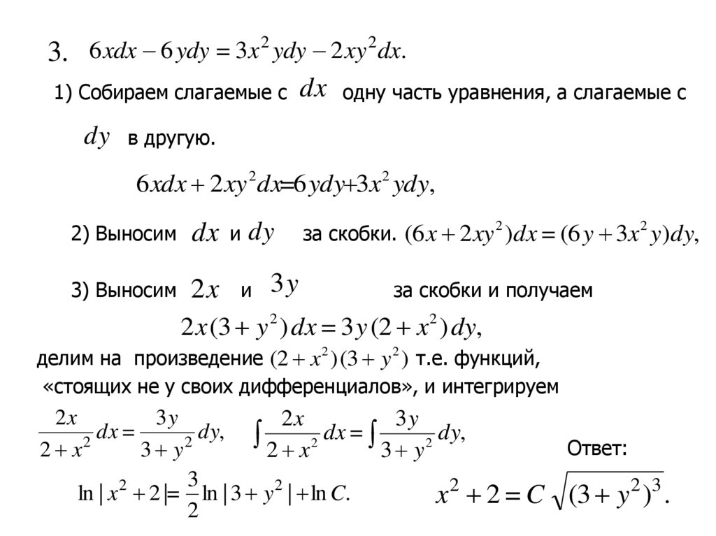 3. 6 xdx 6 ydy = 3x 2 ydy 2 xy 2dx.1) Собираем слагаемые с dx одну часть уравнения, а слагаемые с