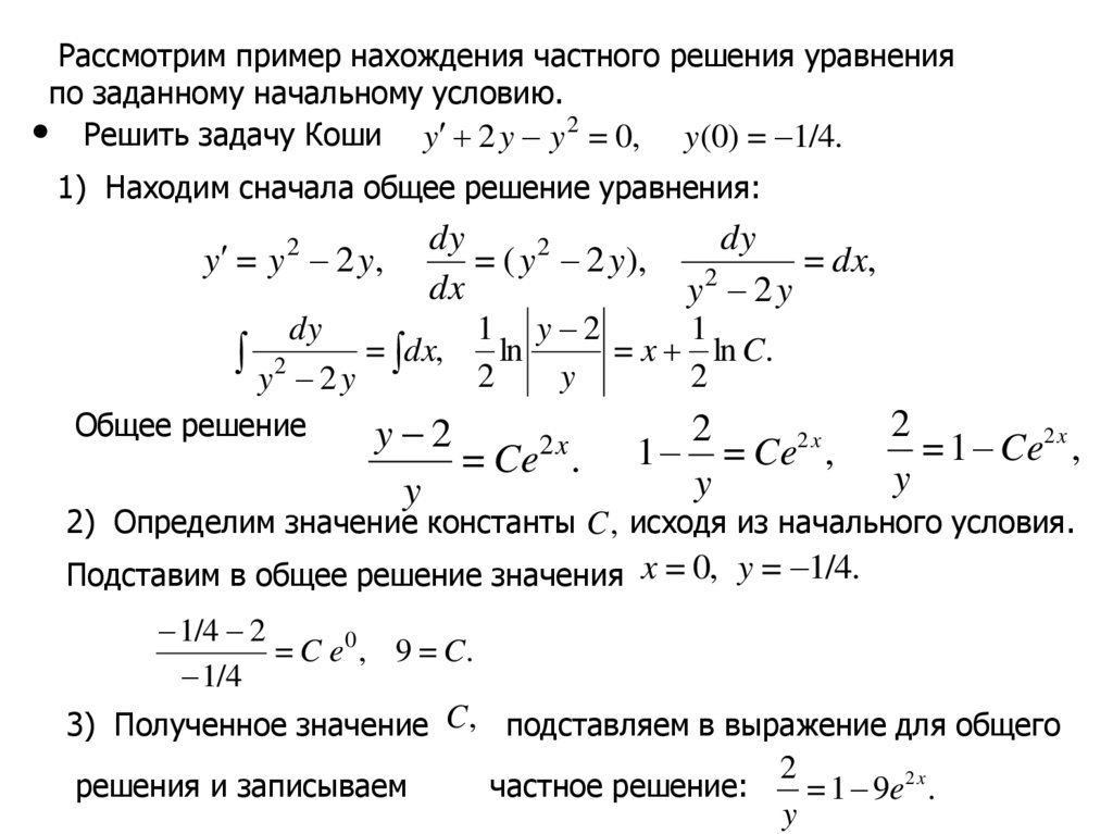 Рассмотрим пример нахождения частного решения уравненияпо заданному начальному условию.